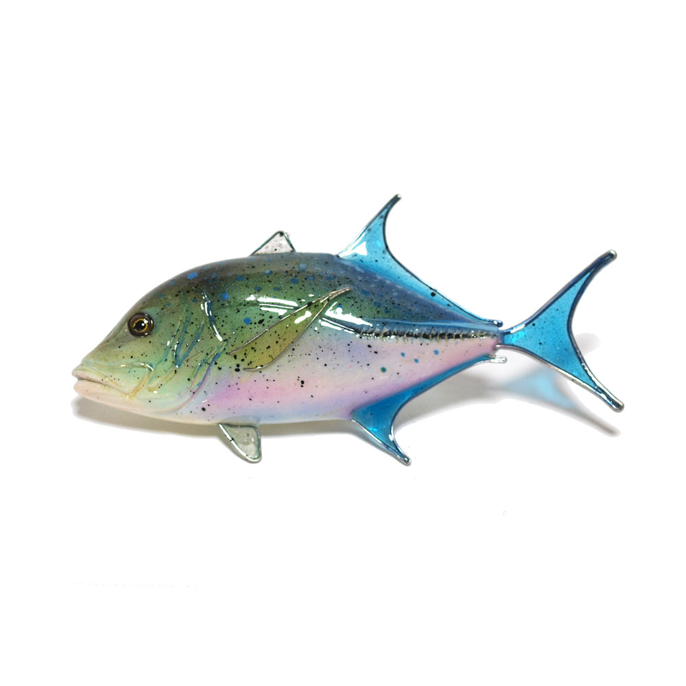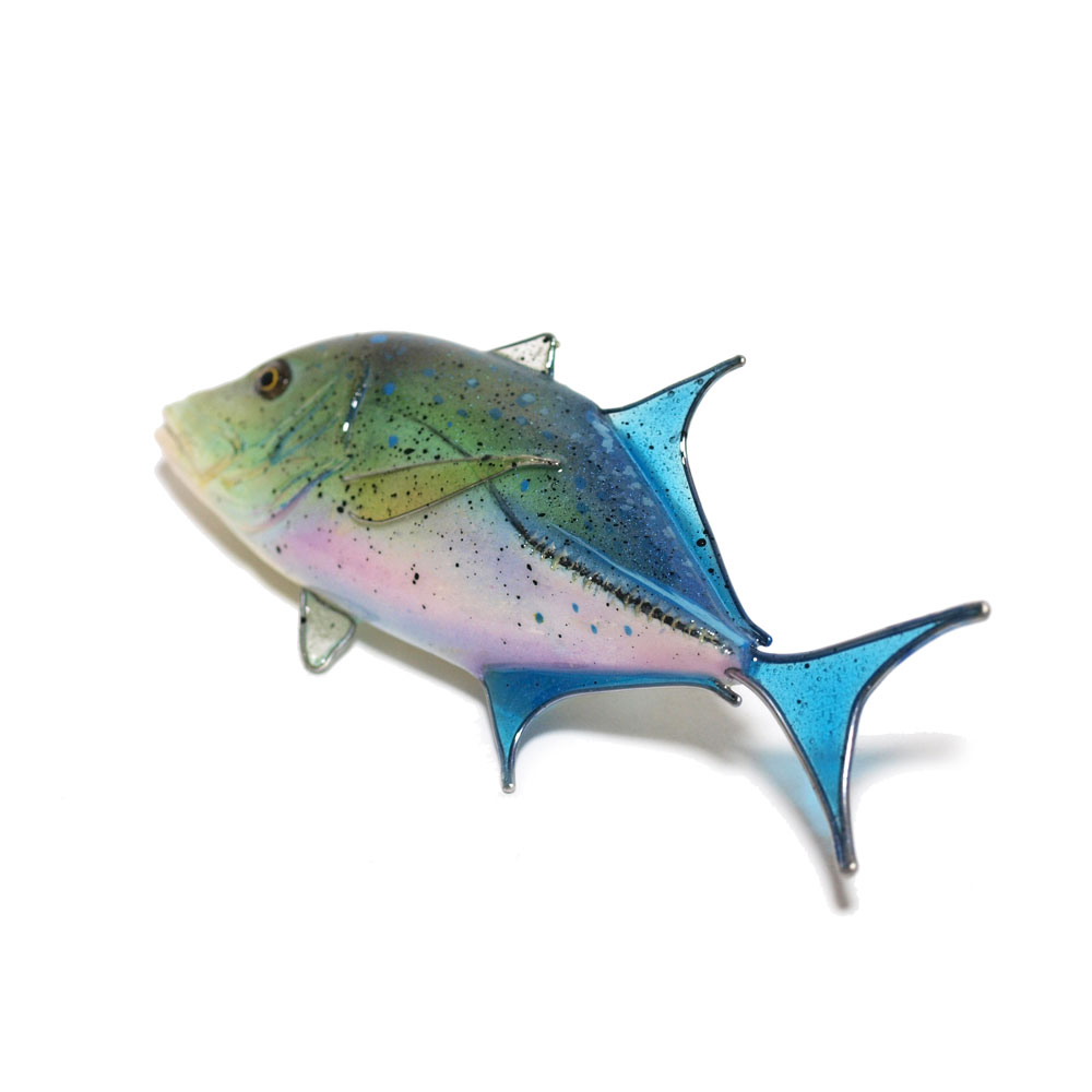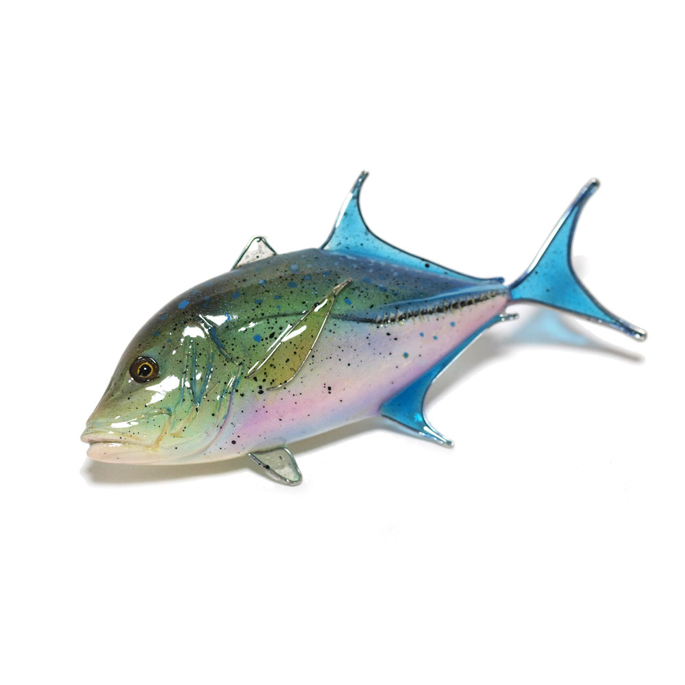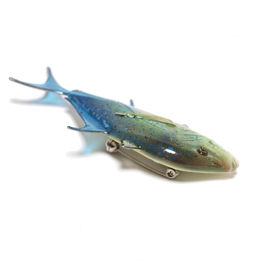 ヒレ部はワイヤーで形を作り厚く透明コーティングをしています。